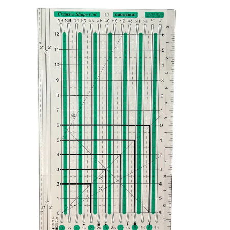 With cutting slots every half inch, the creative shape cut ruler lets you slice your own jelly roll strips or cut fabric in a variety of widths, without measuring each time.