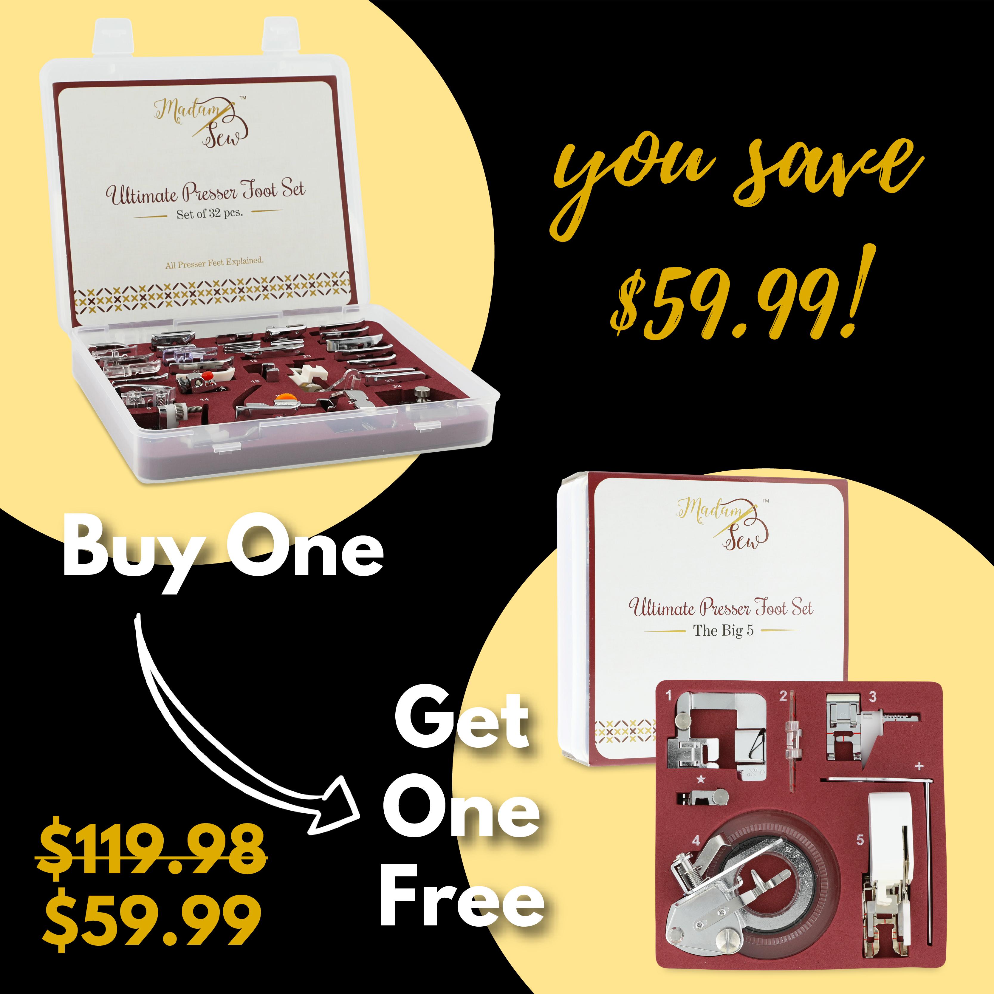 Take home both our Ultimate 32PC Presser Foot Set & our Big 5 Presser Foot Set - The Ultimate Gift!