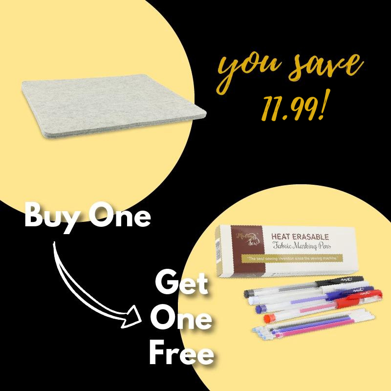 Make clear marks on fabrics with our Heat Erasable Fabric Marking Gel Pens and then make them disappear by ironing on our 100% Wool Pressing Mat!
