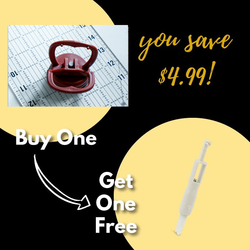 The Handy Ruler Grip allows you to grab your ruler quickly and move it around easily. Add in our Ultimate Needle Threader and you'll be threading needles in a flash. Seriously, you won't know how you did without this dynamic duo!