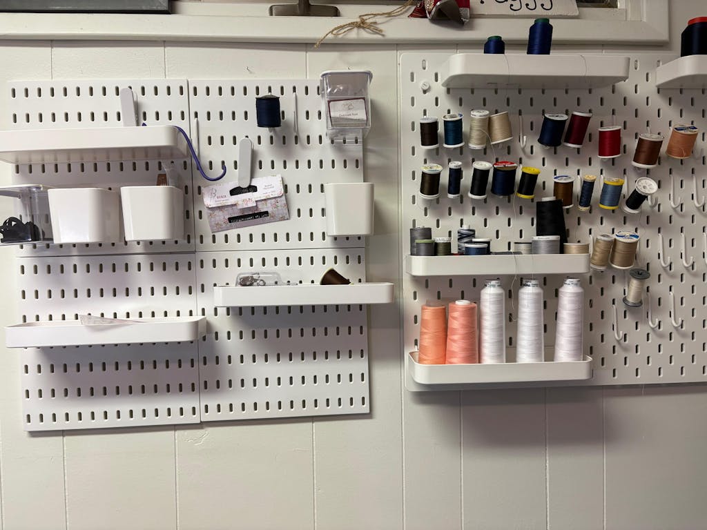 If your Sewing Room/Area NEEDS to be organized, do not let the pegboard pass you by. Now, I have room for 45 more years of sewing! Yea Me!"